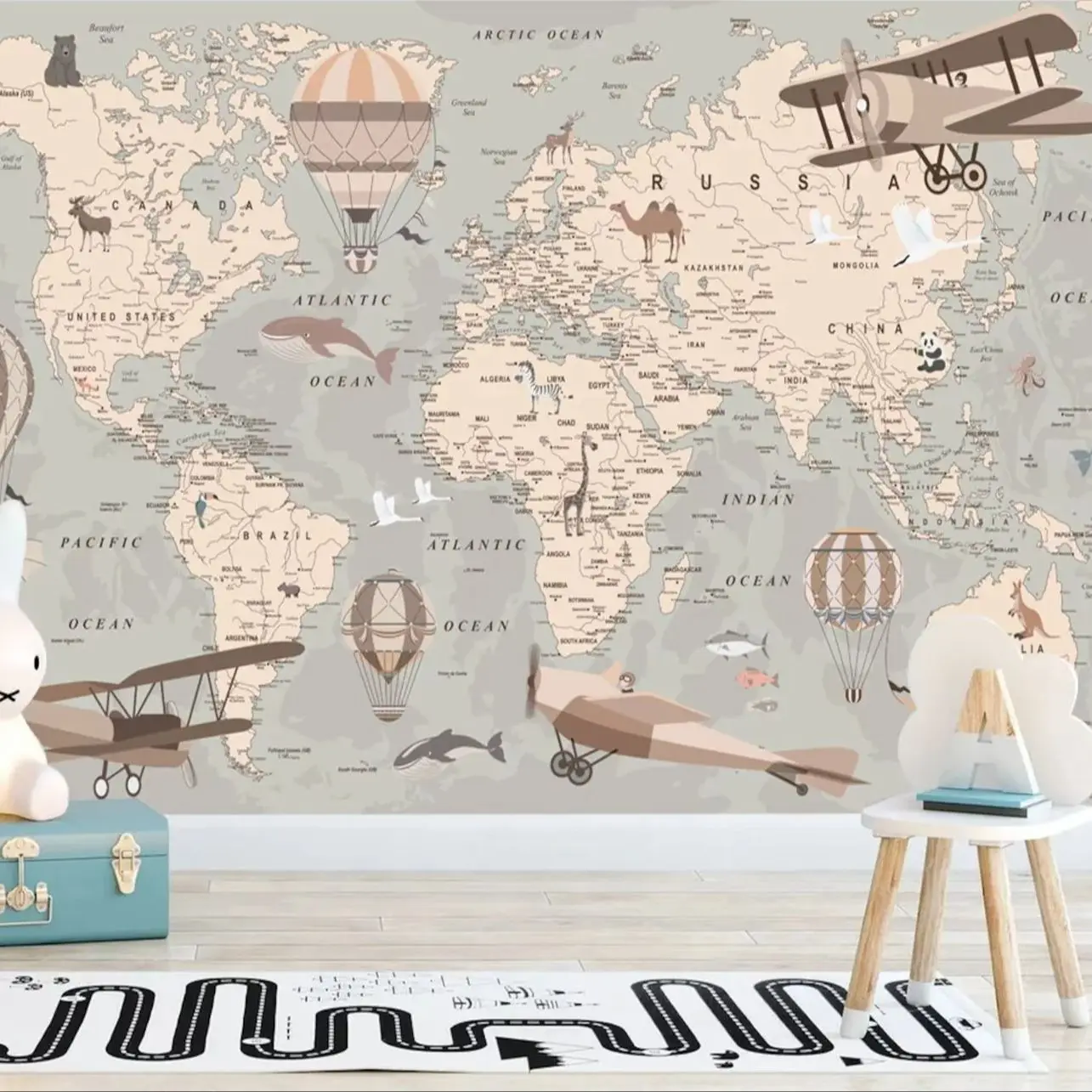 Carte du monde murale régulière, carte pour enfants avec carte d'animaux, papier peint...