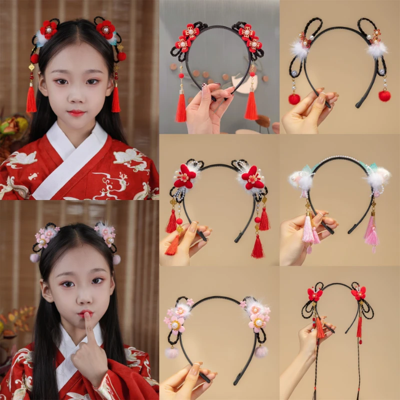 Perruque mignonne pour enfants du nouvel an chinois, pince à cheveux princesse chinoise, band...