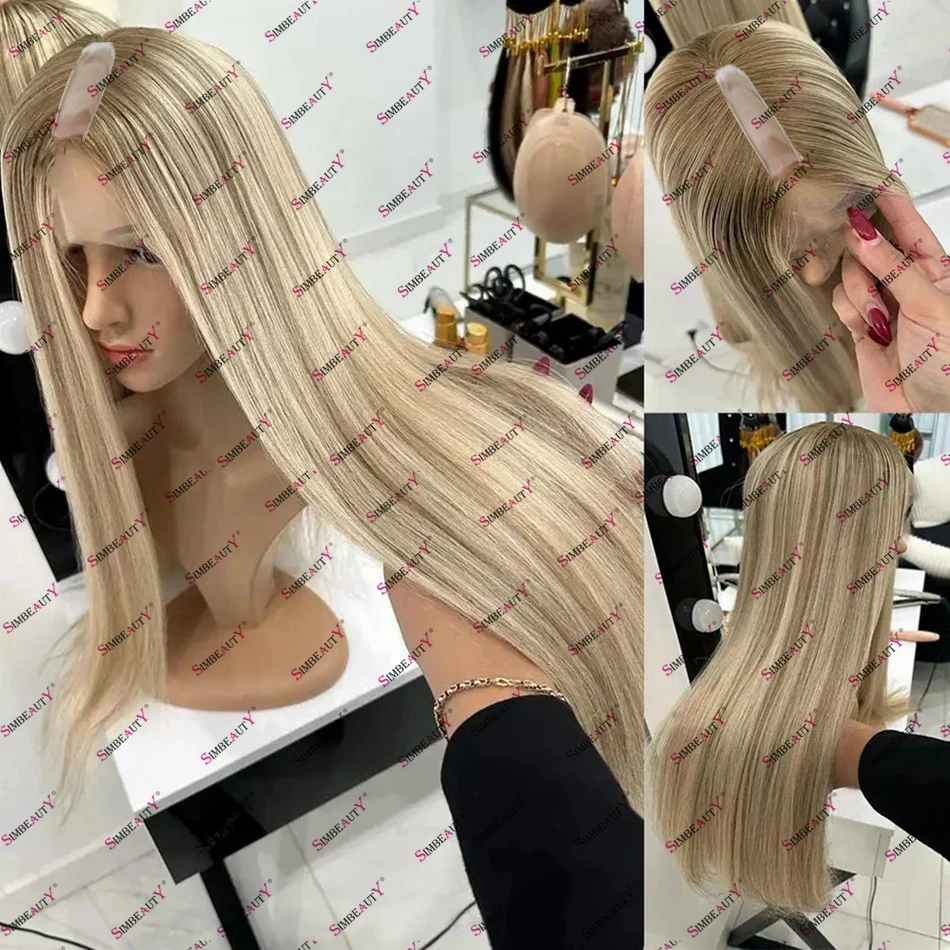 Perruque U-Part en cheveux humains blonds, raides et soyeux, avec mèches balayage, fabriqu&ea...