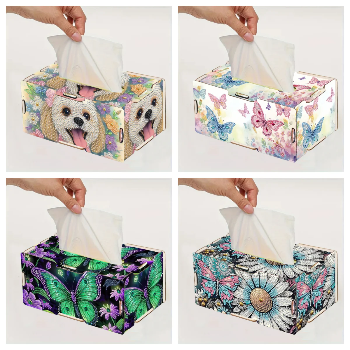 1 ensemble de peinture diamant à motif de chiot/papillon/fleur, peinture rectangulaire &eacut...