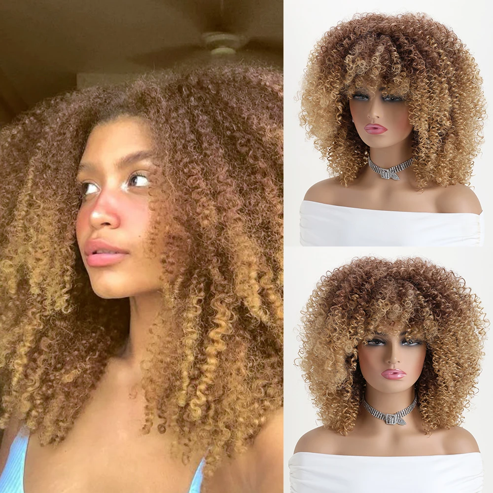 Perruque naturelle courte synthétique marron dégradé marron clair de 16 pouces,...