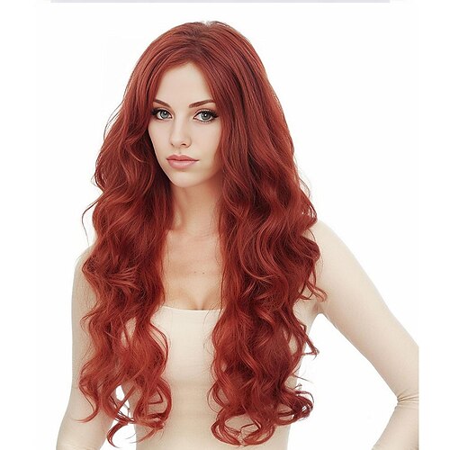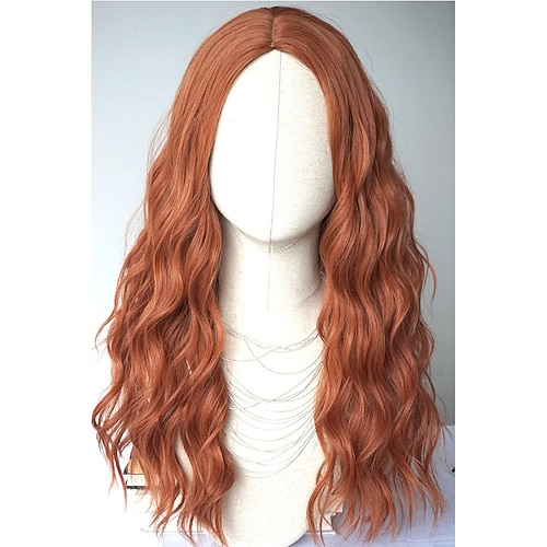 Perruque longue rousse naturelle, perruque rousse bouclée lo...