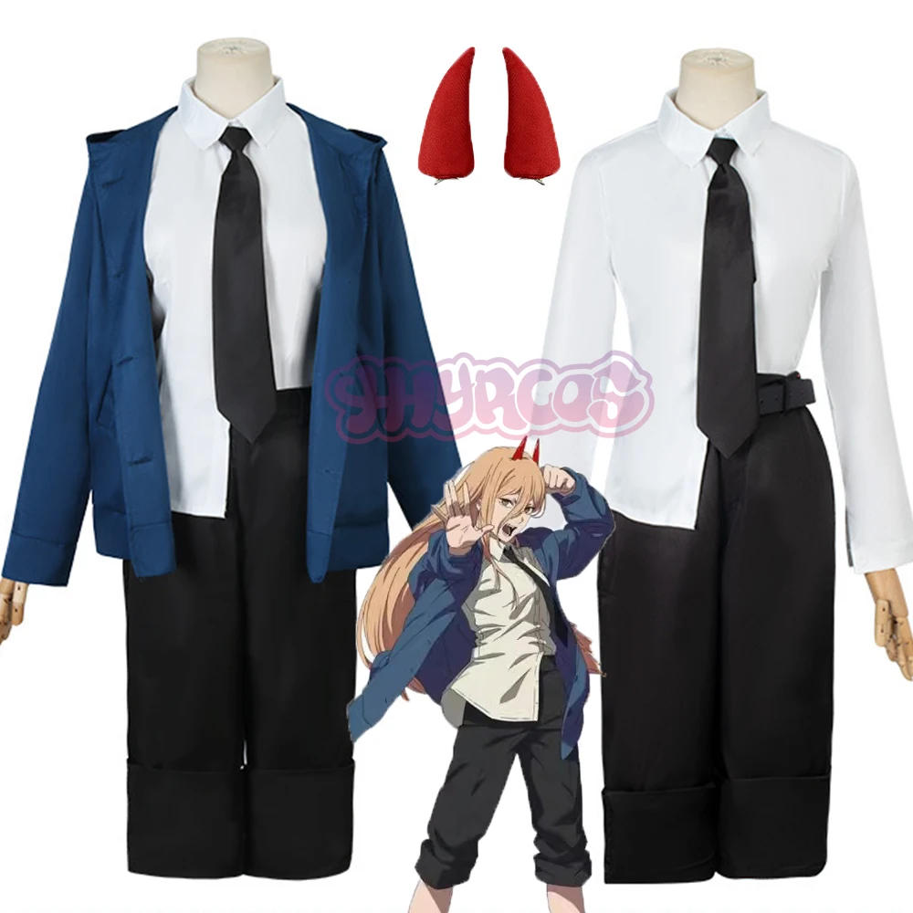 Power Cosplay Costume pour femmes et filles, Anime Chainsa, Uniforme, Veste bleue, Pantalon, Corne, ...