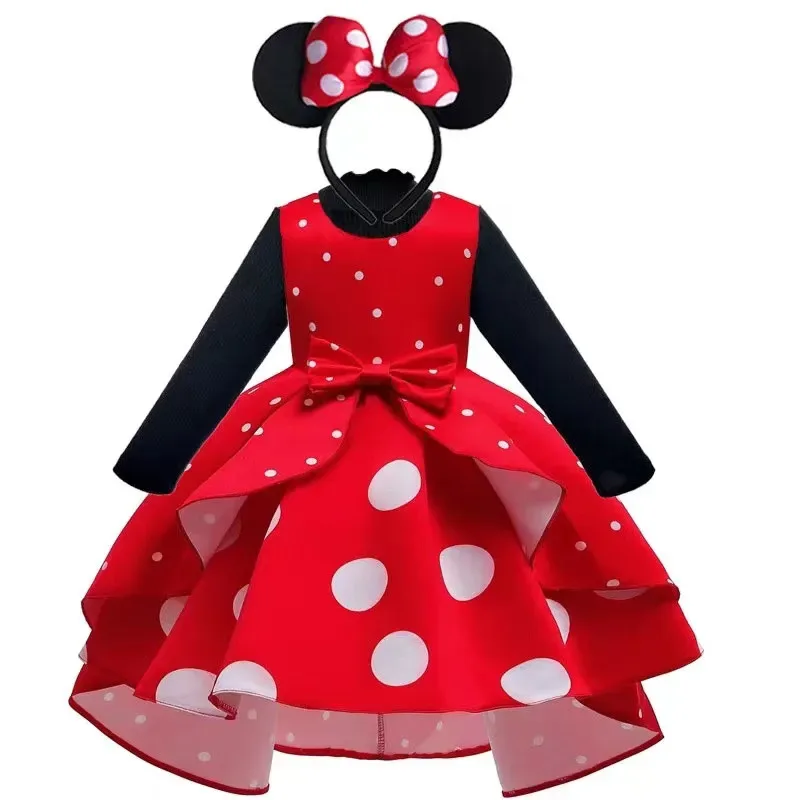 Robe de princesse Cosplay pour filles, vêtements de carnaval de noël à pois Mickey...