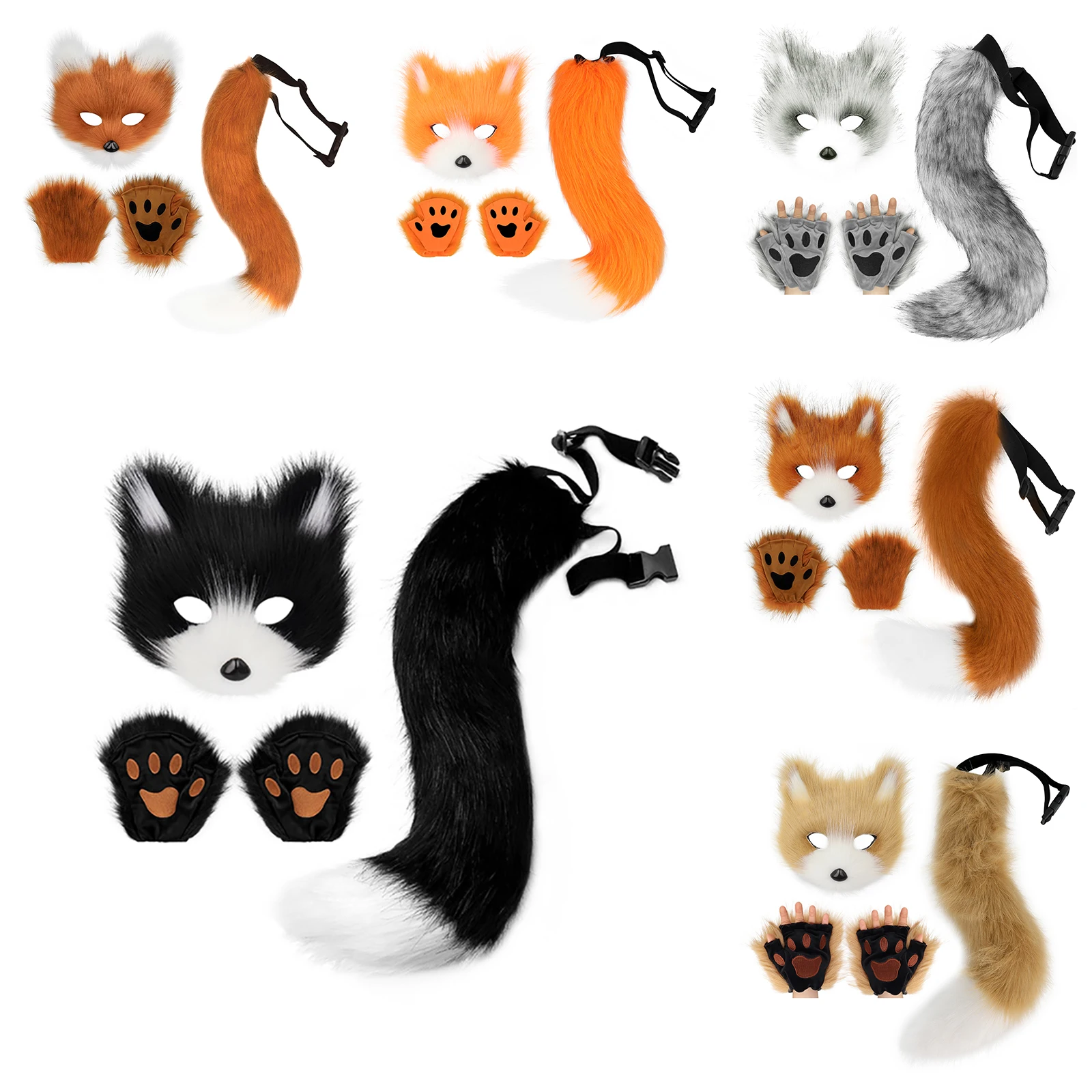 Ensemble de costumes de Cosplay en fausse fourrure pour filles et femmes, queue de renard, chat, lou...