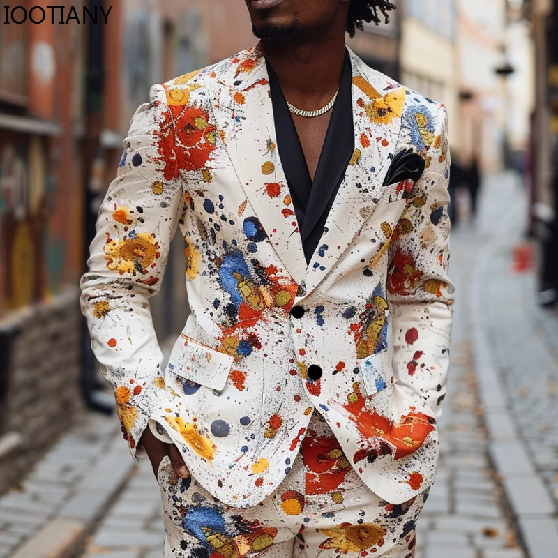 Costume décontracté pour hommes, mode américaine Graffiti, imprimé color...