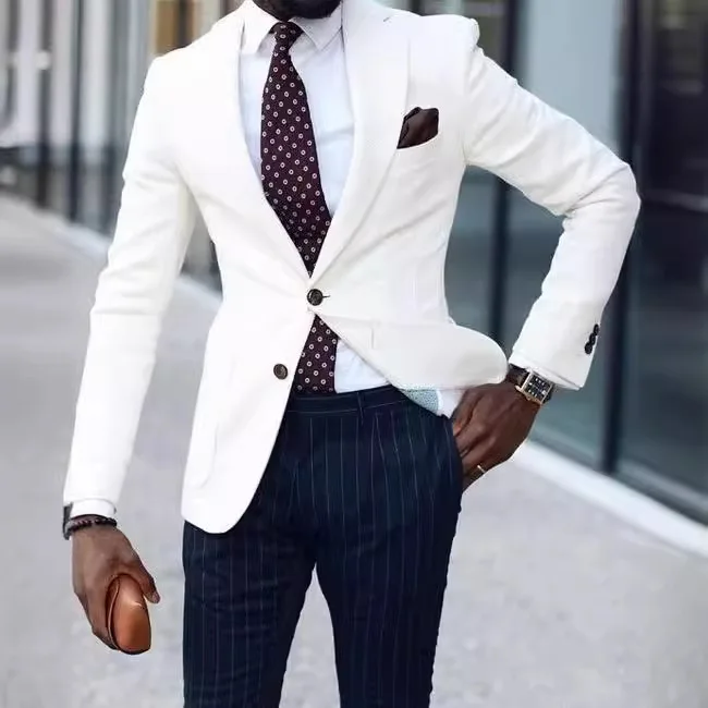 • Costume de mariage sur mesure blanc noir pour hommes, nouveau Desig...
