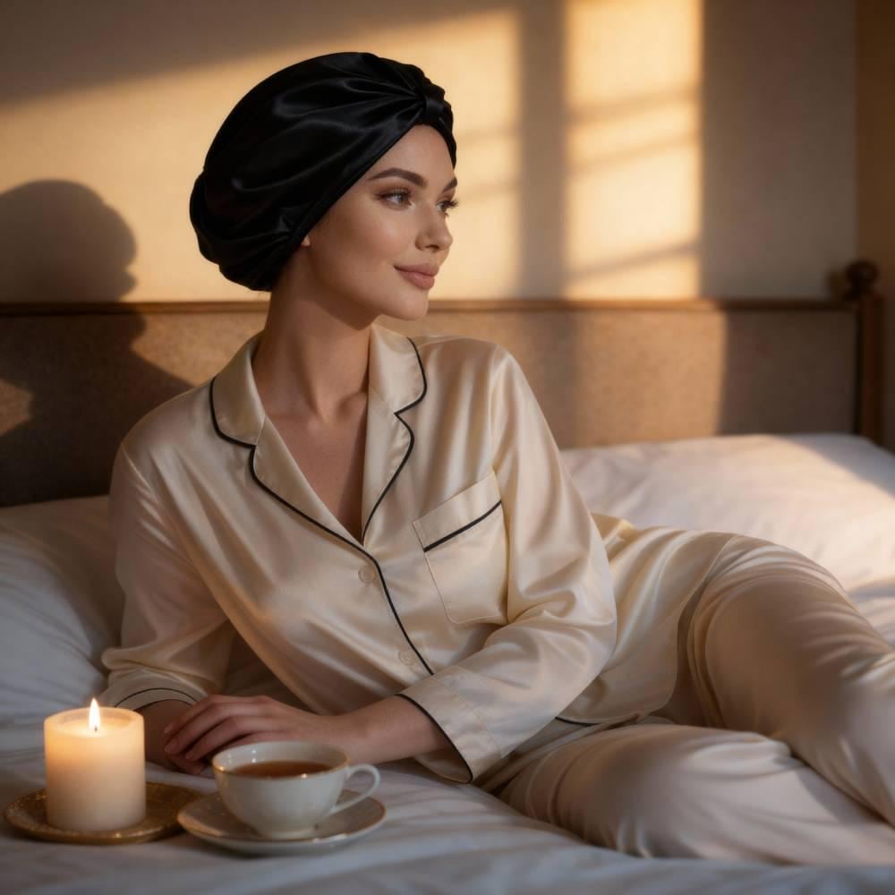 Bonnet de nuit en soie de mûrier noir | Bonnet 100 % charmeus...