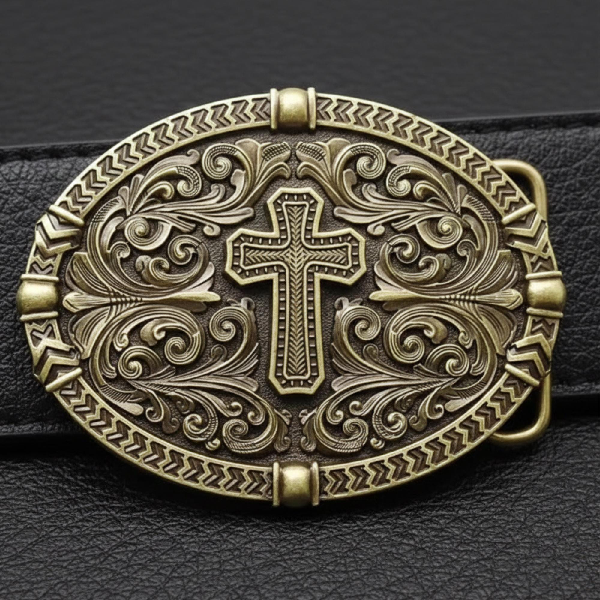 Boucle de ceinture croix western vintage -- Style cow-boy religieux...