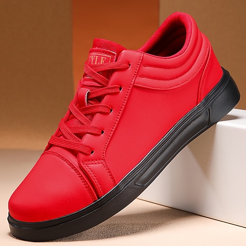 Baskets en cuir rouge pour homme au design épuré: un ...