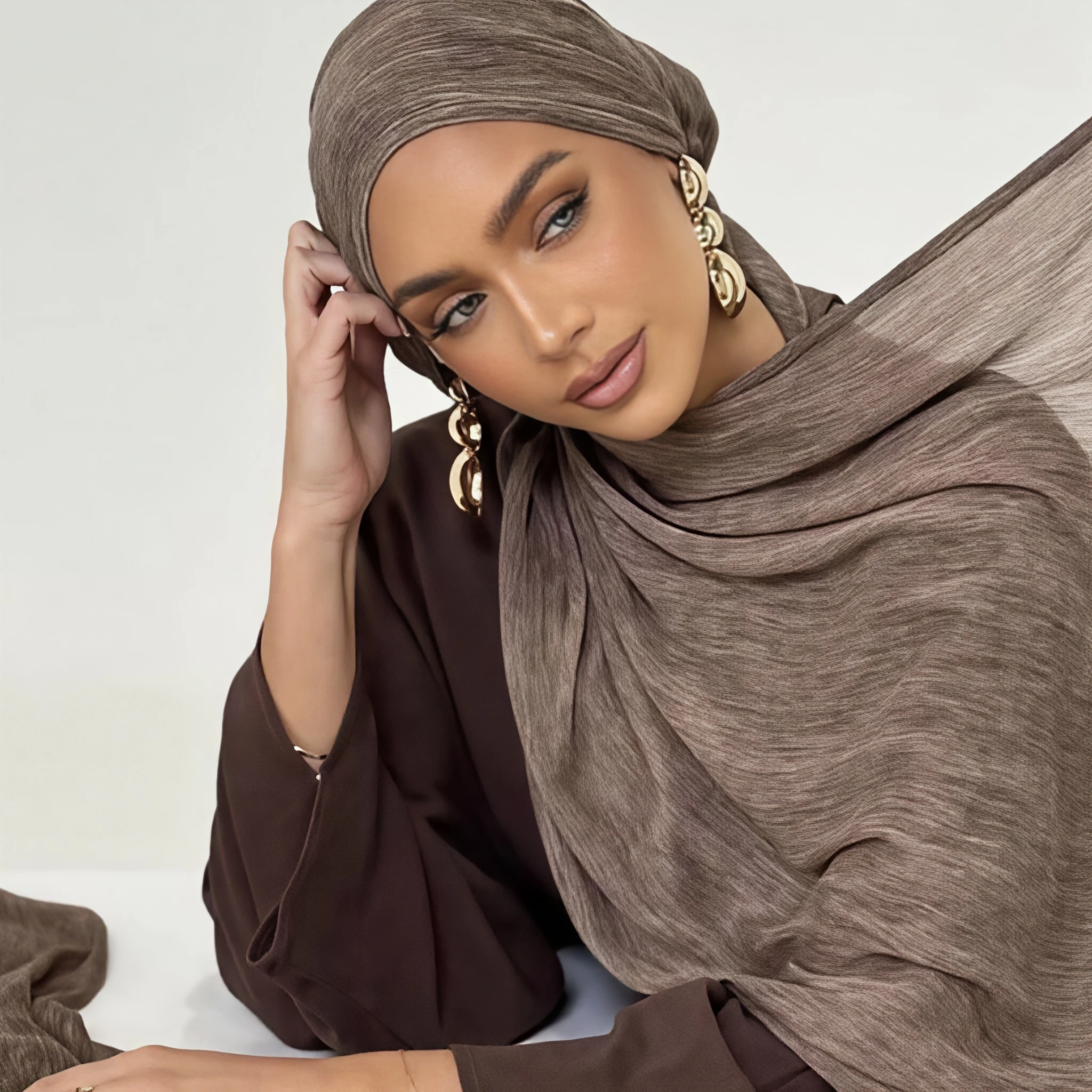 Musulman Mujer Foulard solide Wraps Plain Islamic Turban Wrinkle Fo...