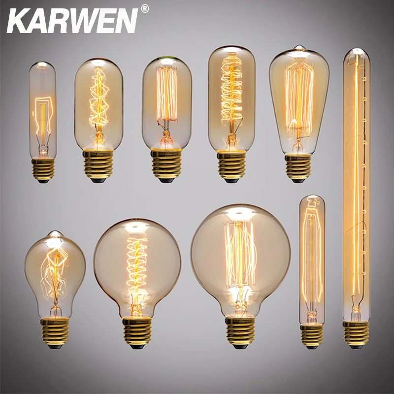 Ampoule Edison E27 lampe rétro à incandescence 40W 220V ST64 A19 T45 T10 G80 G95 ampou...