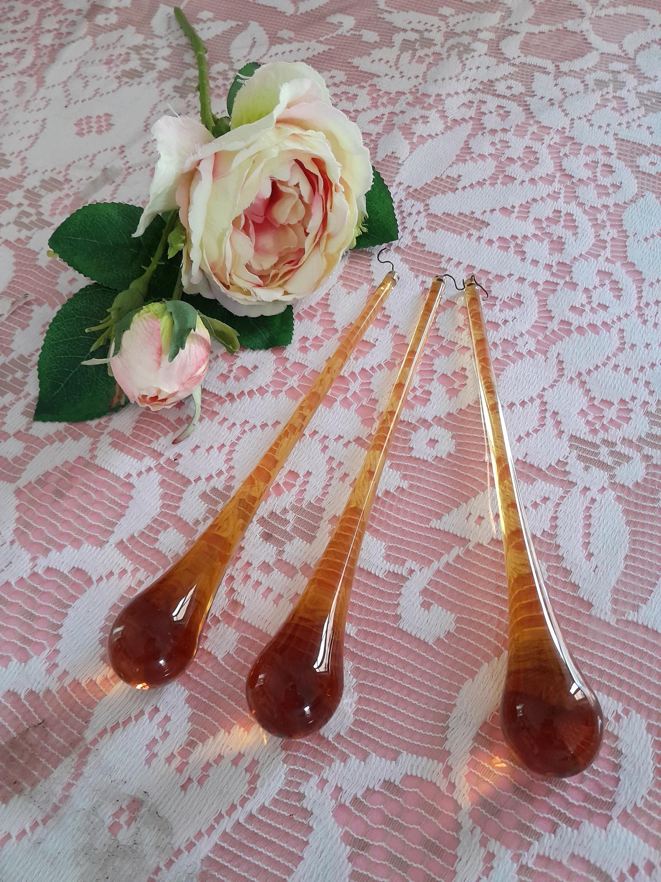 NOUVEAU ! lot de trois MUrano drops de 7,87 po. de haut, couleur am...