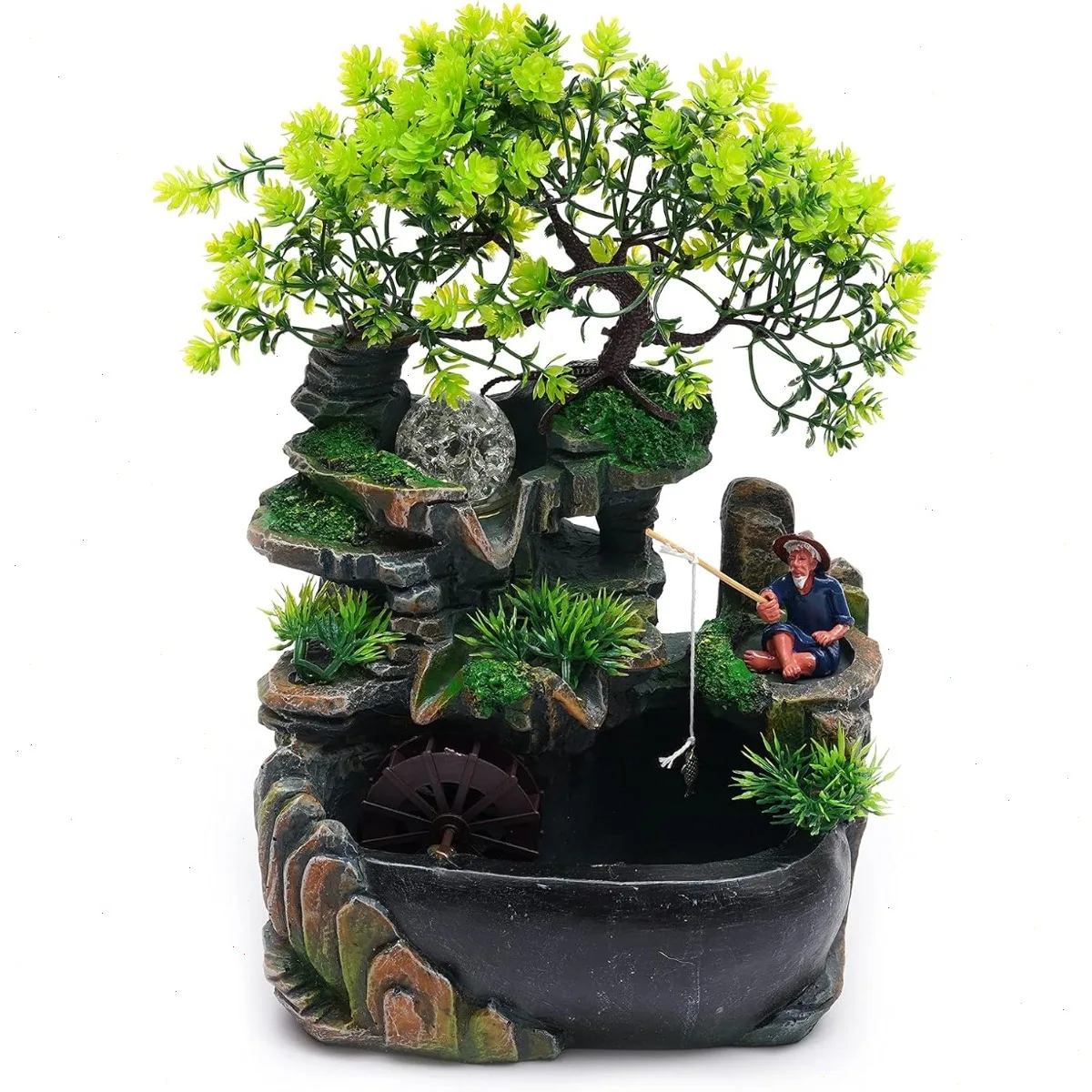 Fontaine de table, fontaine d'intérieur de bureau avec décor pêcheur et rocaille...