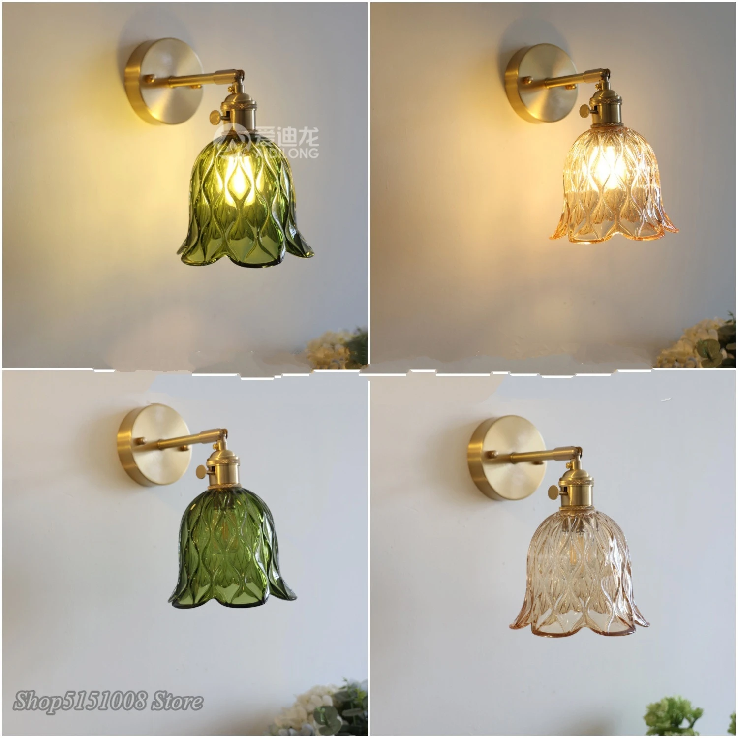 Applique murale nordique verte en jonc de mer avec abat-jour en verre, applique murale él&eac...
