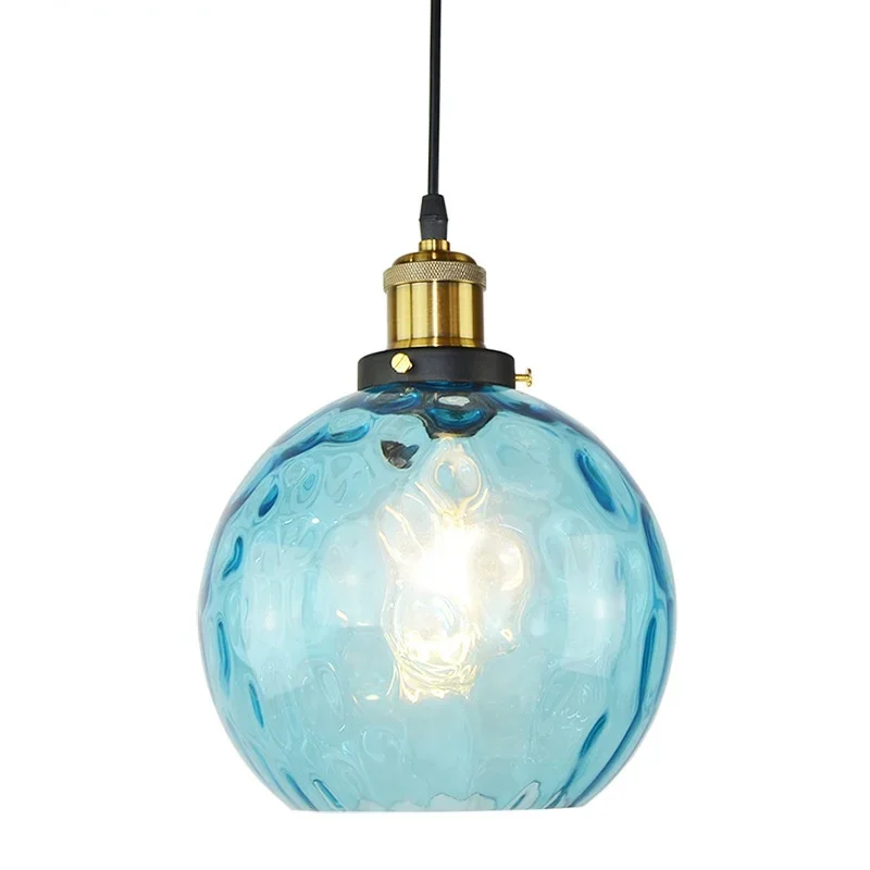 Lampe LED Suspendue en Forme de Boule de Verre, Design Moderne, Couleur Bleue, Luminaire Déco...