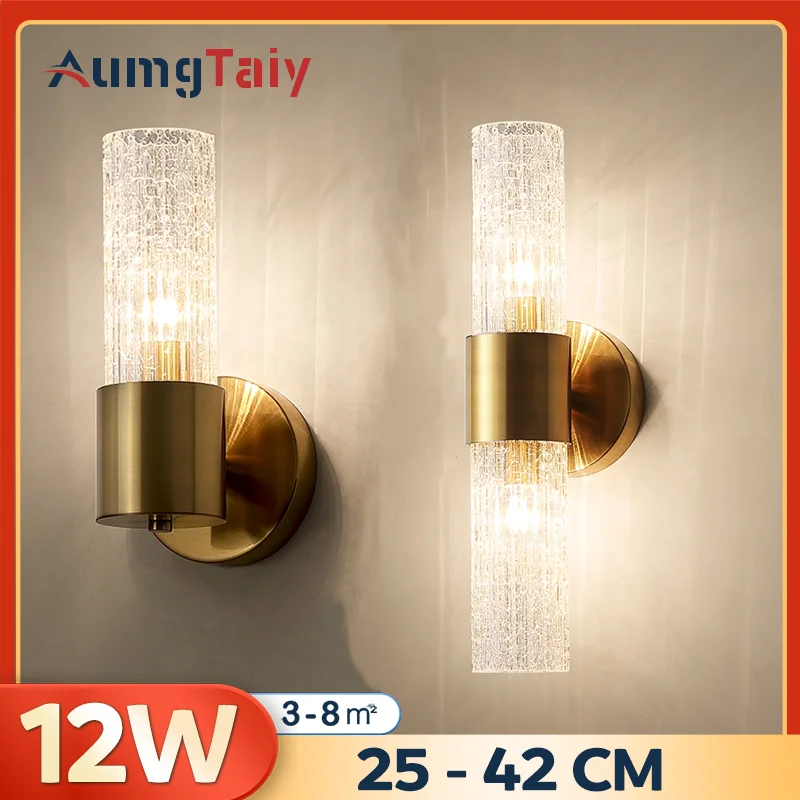 Lampes murales LED pour chambre à coucher, 12W, applique murale moderne en verre et mé...