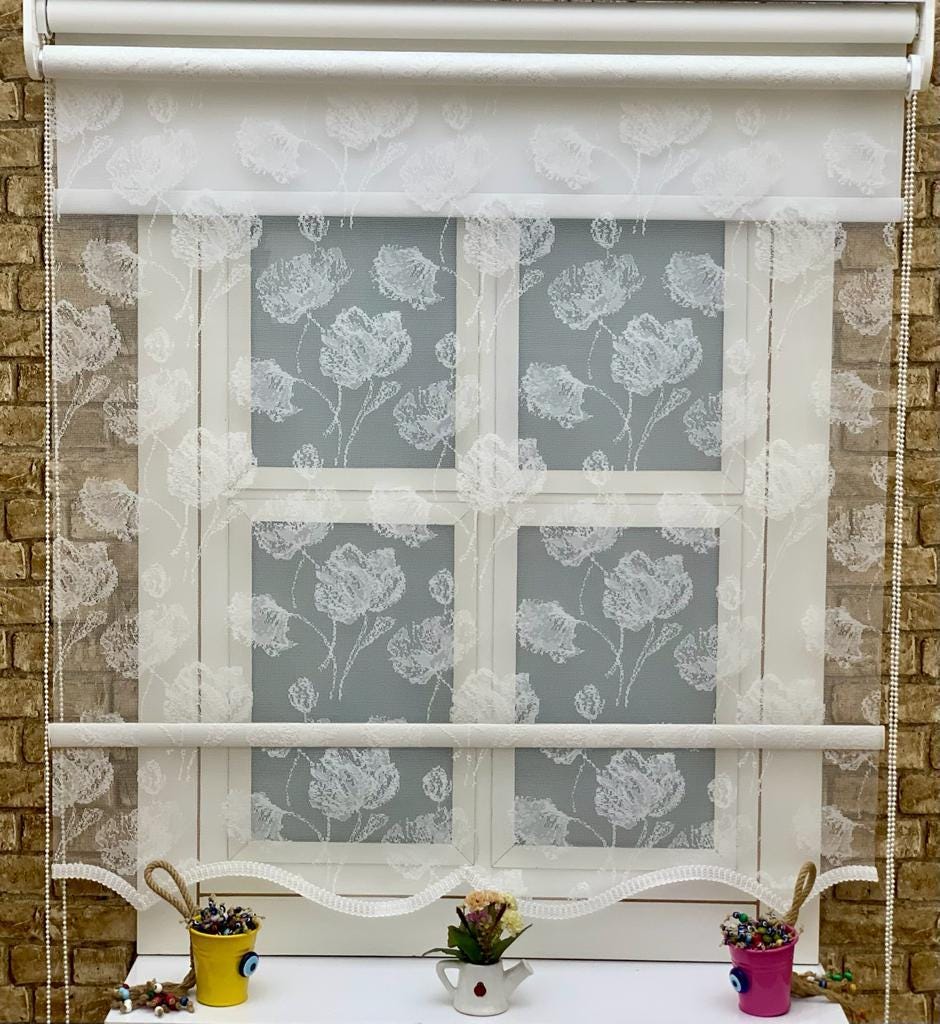 Store enrouleur élégant en dentelle blanche pour fen&...