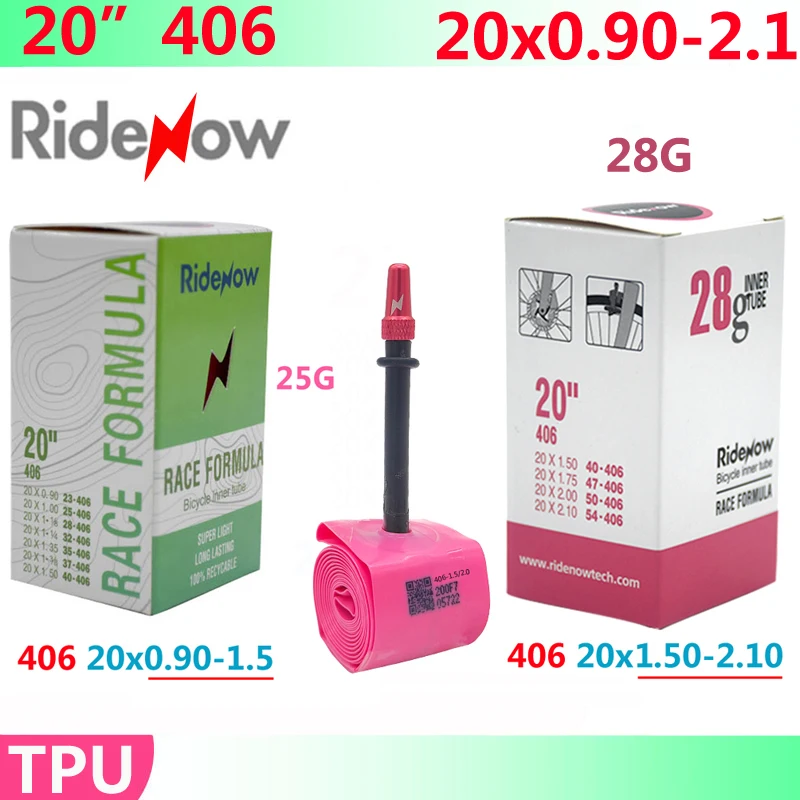 RideNow-Chambre à air de vélo en TPU, caméra de vélo BMX, 20 ", 406...