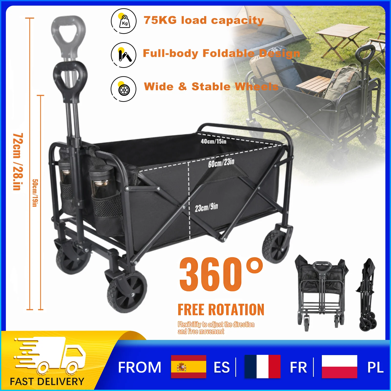 Chariots de chariot pliants, chariot Wagon avec roues tout Terrain,...