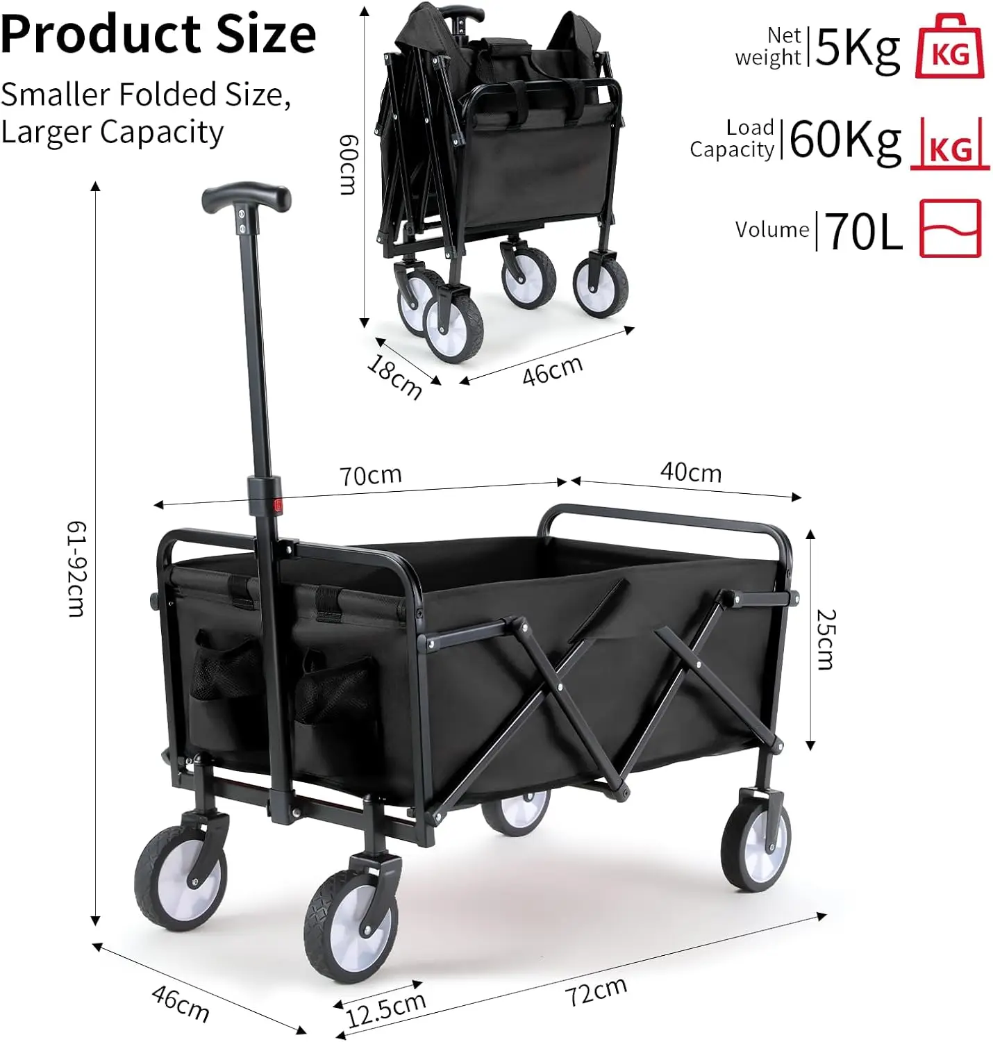 Chariots de chariot pliants 80L, chariot de chariot pliant avec roues tout Terrain, chariots de jard...