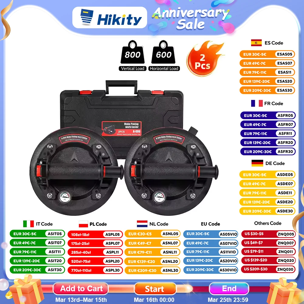 Hikity 8''/20,4 cm – Ventouse de levage de verre robuste, capacité de charge 800 LBS, v...