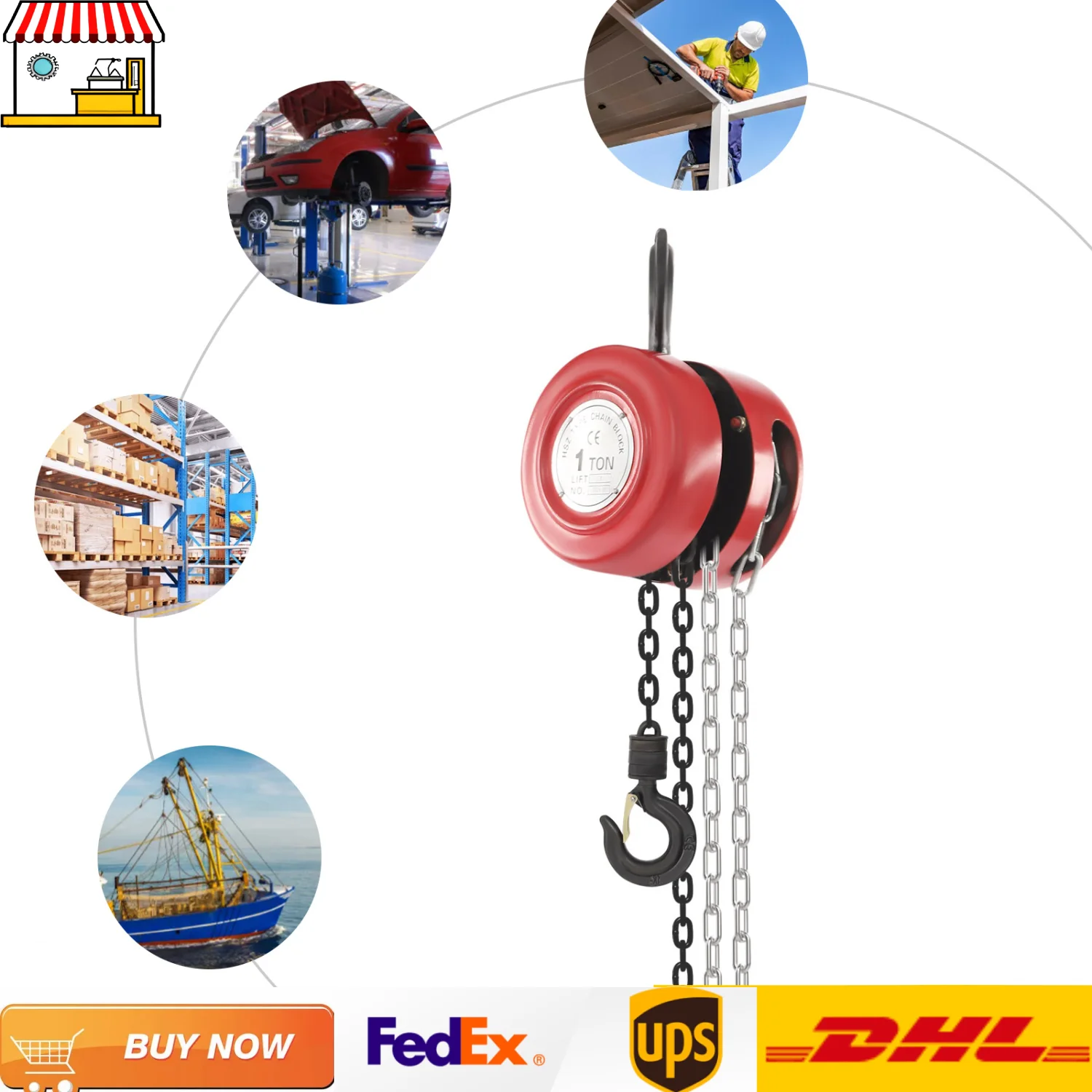 Palan à chaîne manuel industriel en acier au manganèse, 1 tonne, 9,84 pieds, out...