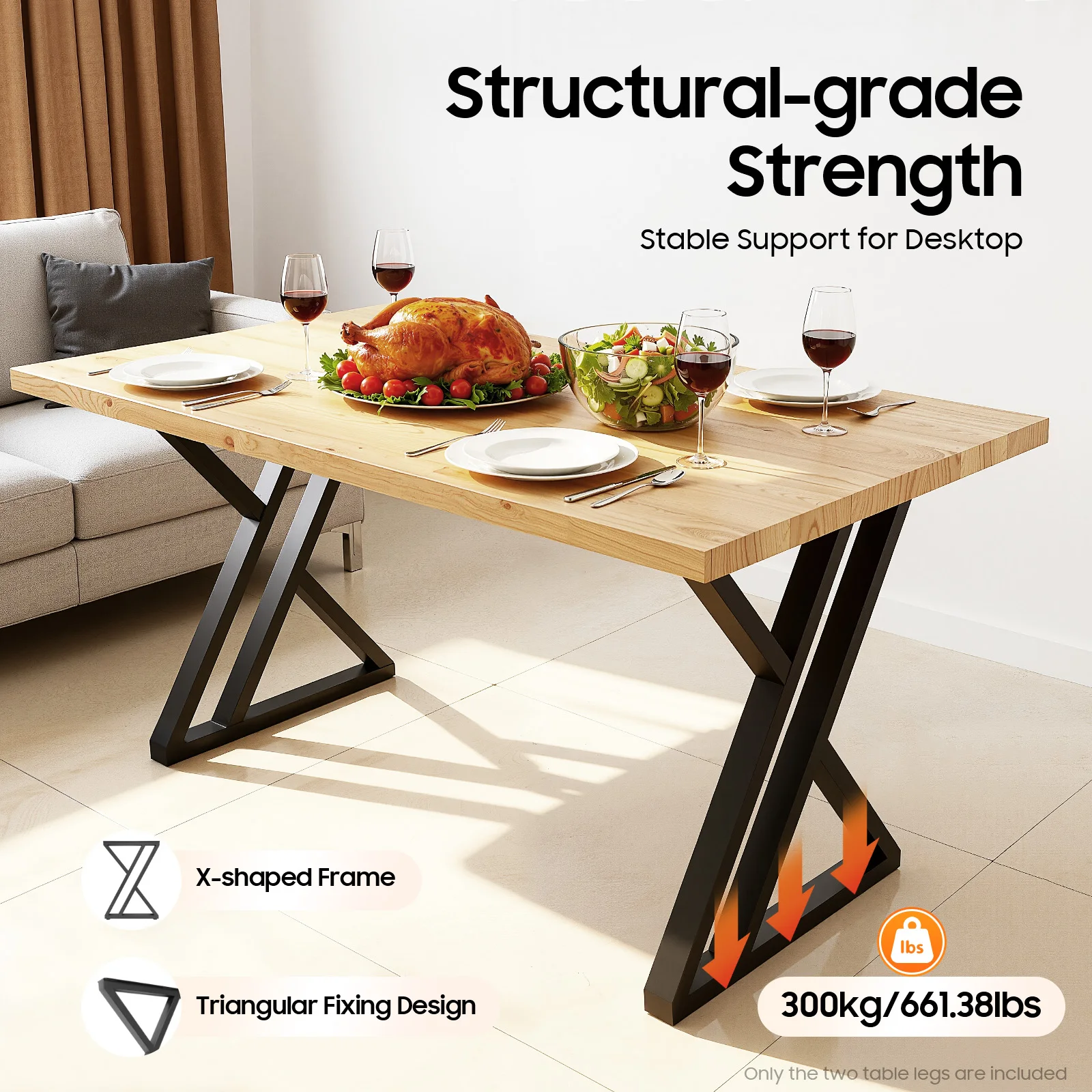 2 pièces de pieds de table en métal en forme de X, ro...