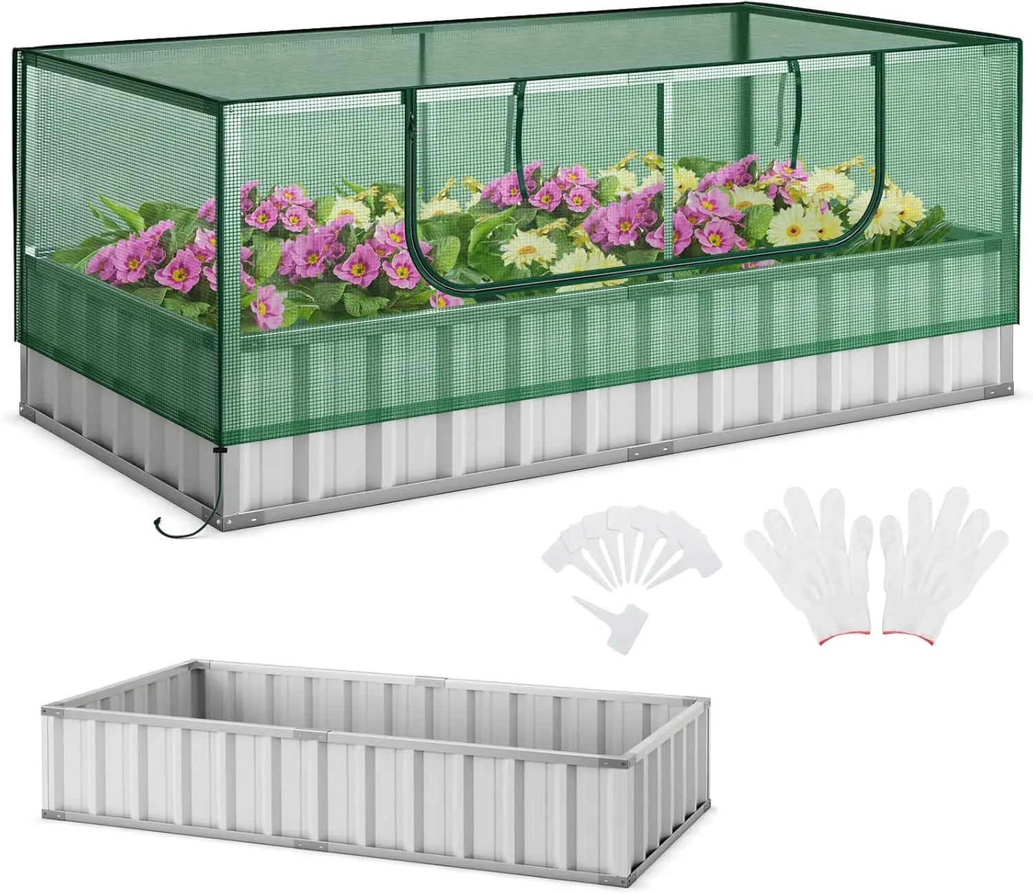 Lit surélevé 2 en 1 avec serre, galvanisé, ave...