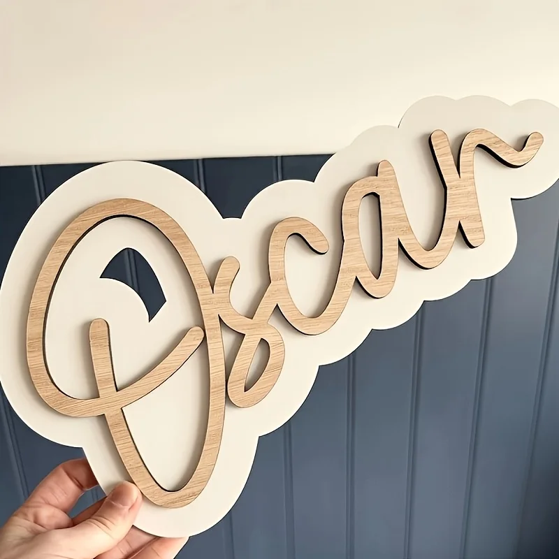 Une plaque de nom de lettre plate double couche 2D, plaque de porte personnalisée en bois, pl...
