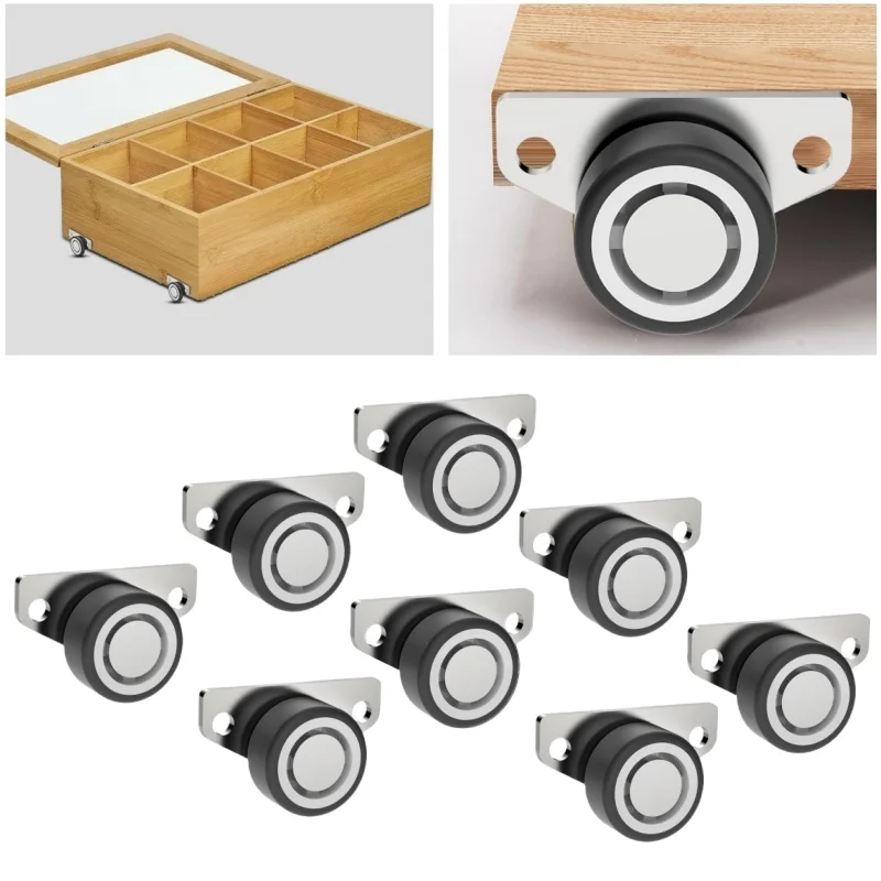 Mini roulettes à montage latéral, roulettes de meubles en caoutchouc silencieux, roues...