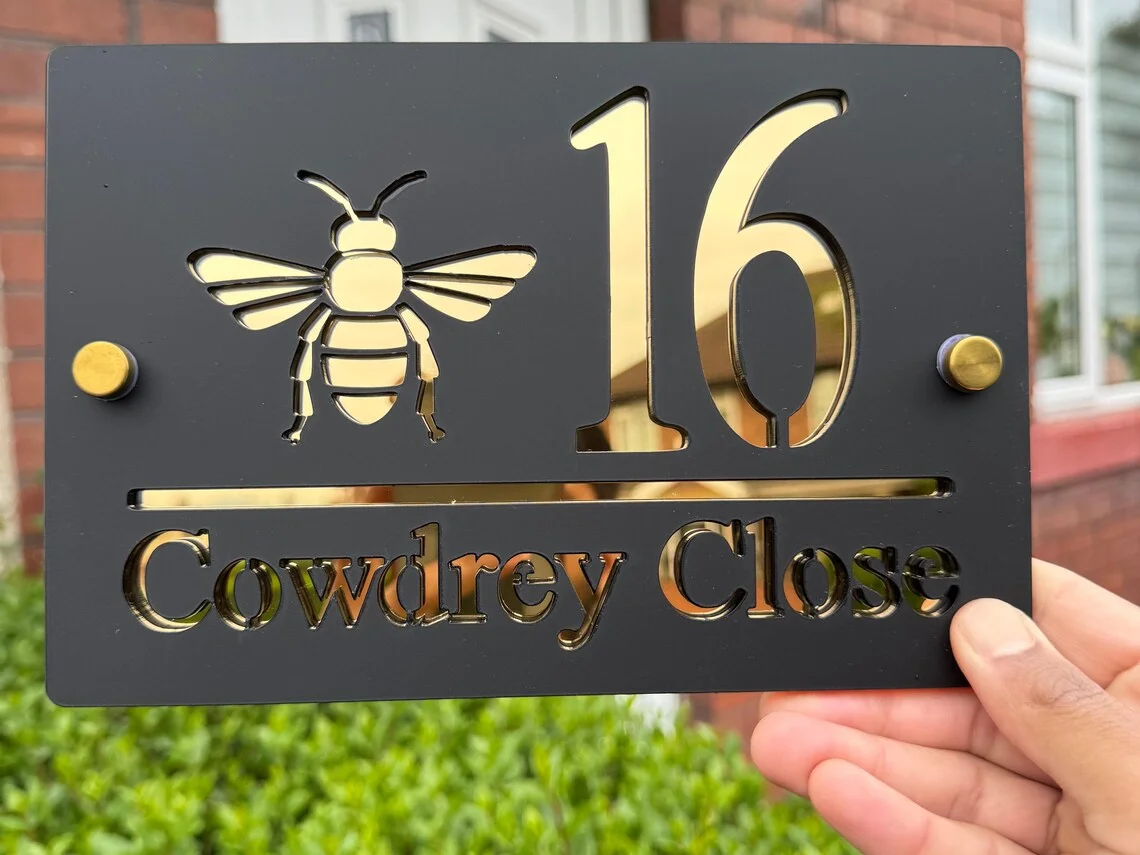 Panneau de numéro de maison personnalisé, panneau de porte Design abeille, numé...