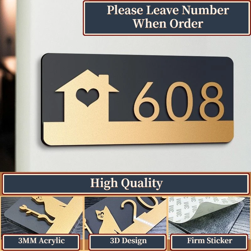 Plaque de porte moderne en acrylique avec autocollant, numéro de maison personnalisé p...