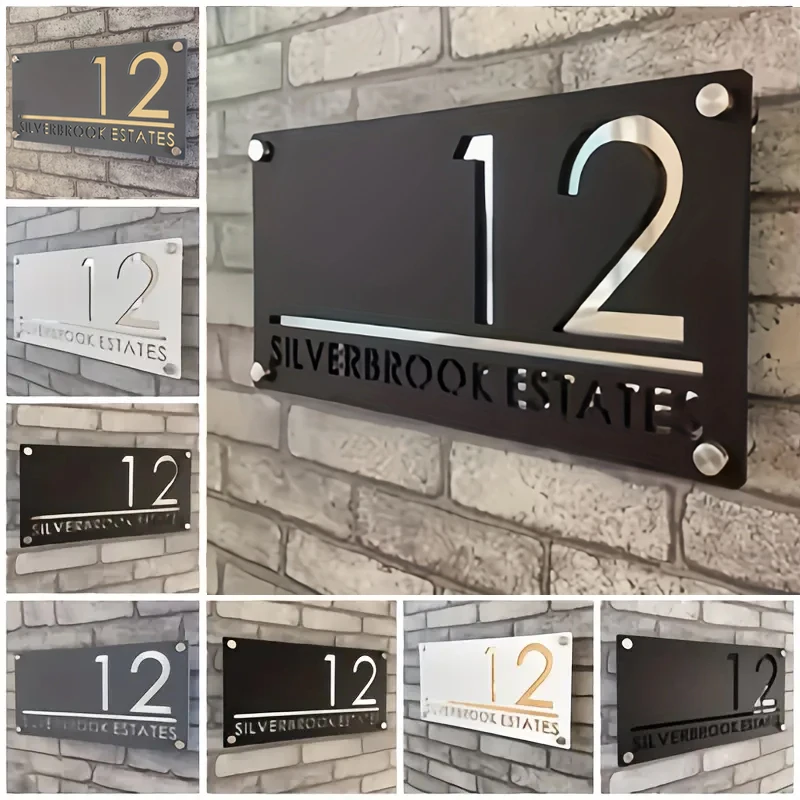 Panneau de numéro de maison Vertical, panneau d'adresse personnalisé en acrylique, Pla...