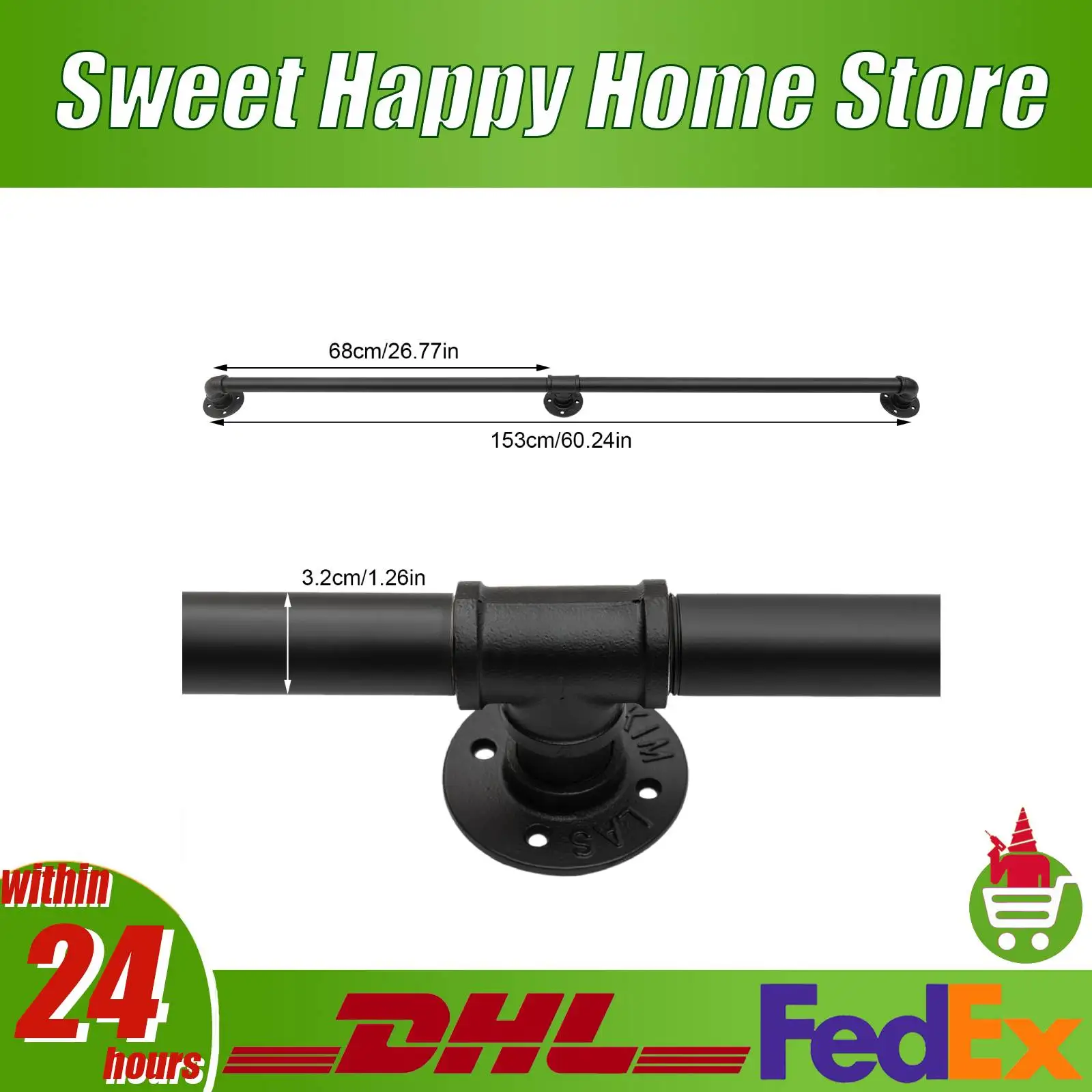 Main courante d'escalier de tuyau industriel de 5 pieds/6,6 pieds, ...