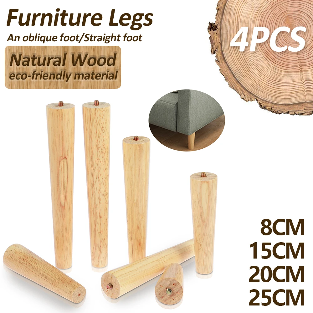 4 pièces pieds de meubles pieds de meubles solides en bois naturel pieds de Table obliques/dr...