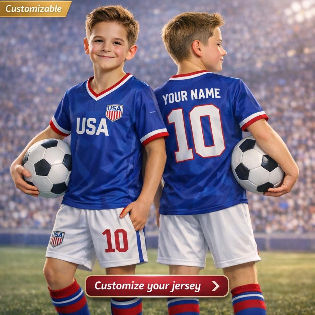 Maillot de football bleu personnalisé avec nom de l'équipe et numéro, maillot d...