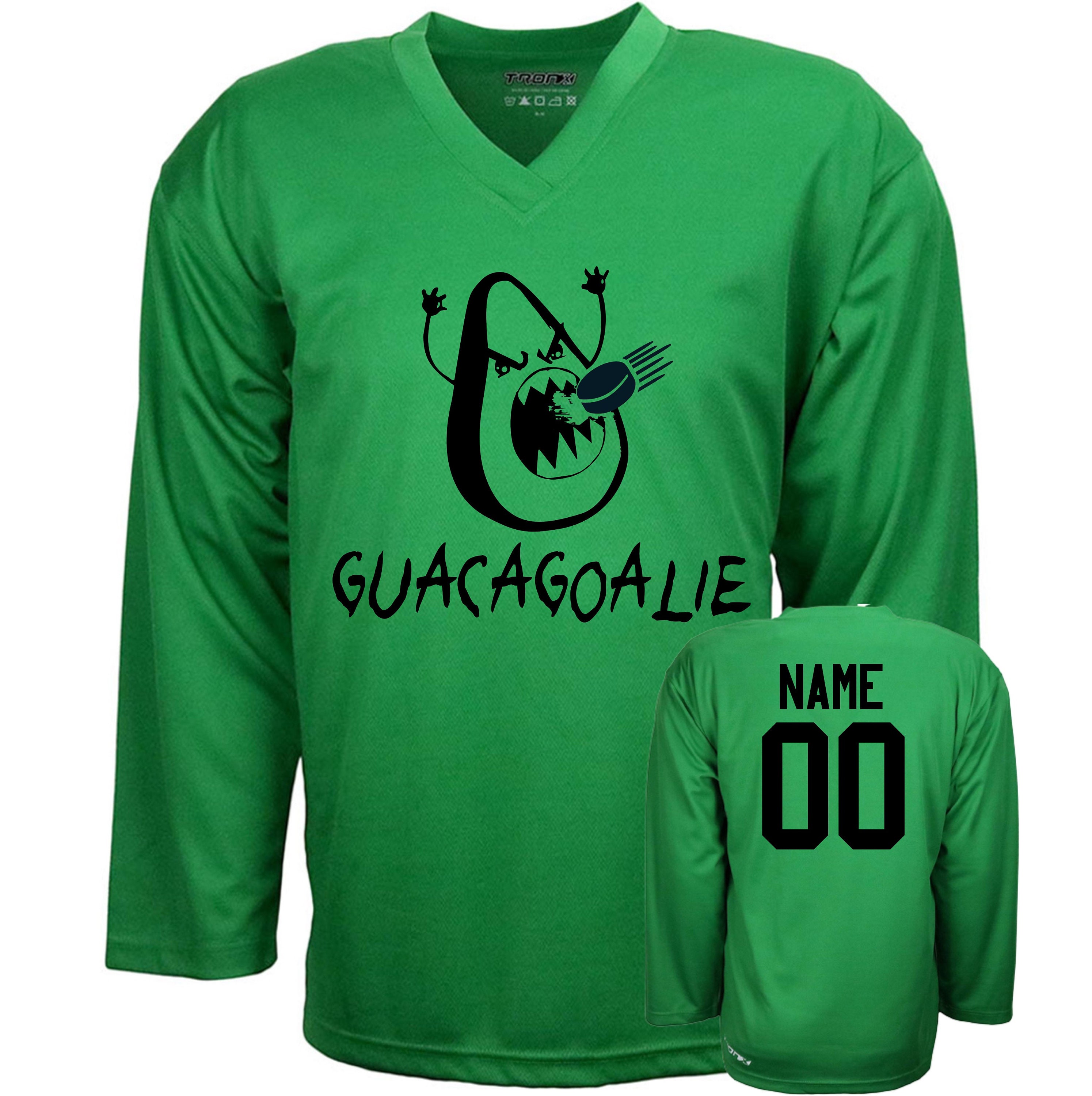 "Maillot de hockey sur glace personnalisé Angry Avocado coupe gardien de but avec nom et...