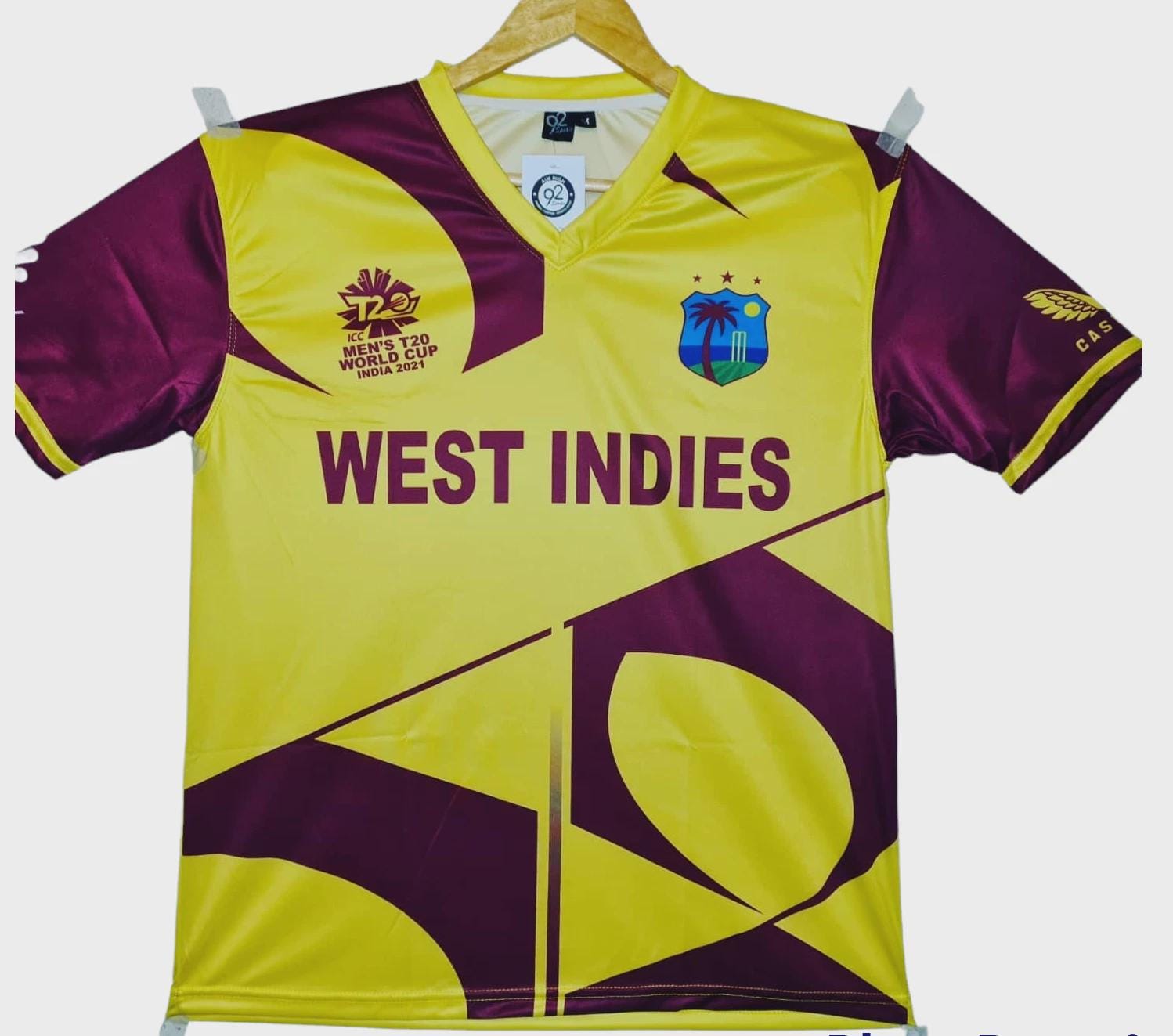 Maillot West Indies Cricket 2021 Champions T20 Coupe du monde - Réplique en tissu premium C&e...