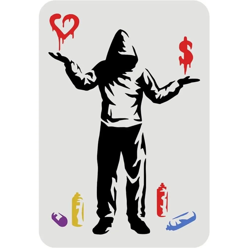 Pochoir Banksy 11.7x8.3 pouces réutilisable Banksy-amour ou argent pochoir à capuche h...