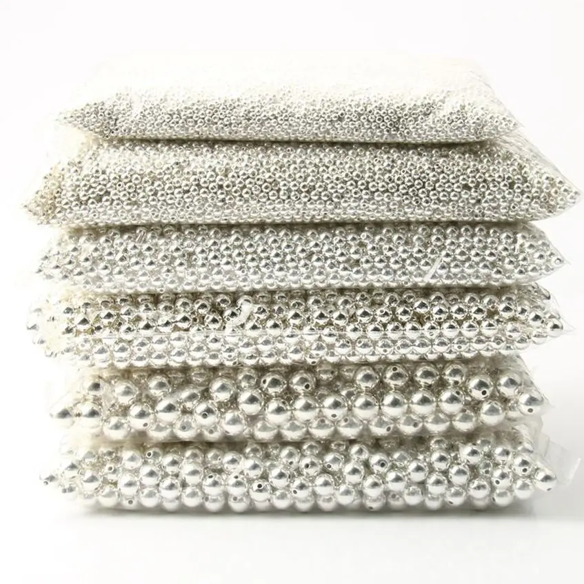 3 4 6 8 10 12mm 30-500 pièces couleur argent plaqué CCB graine ronde CCB plastique ron...