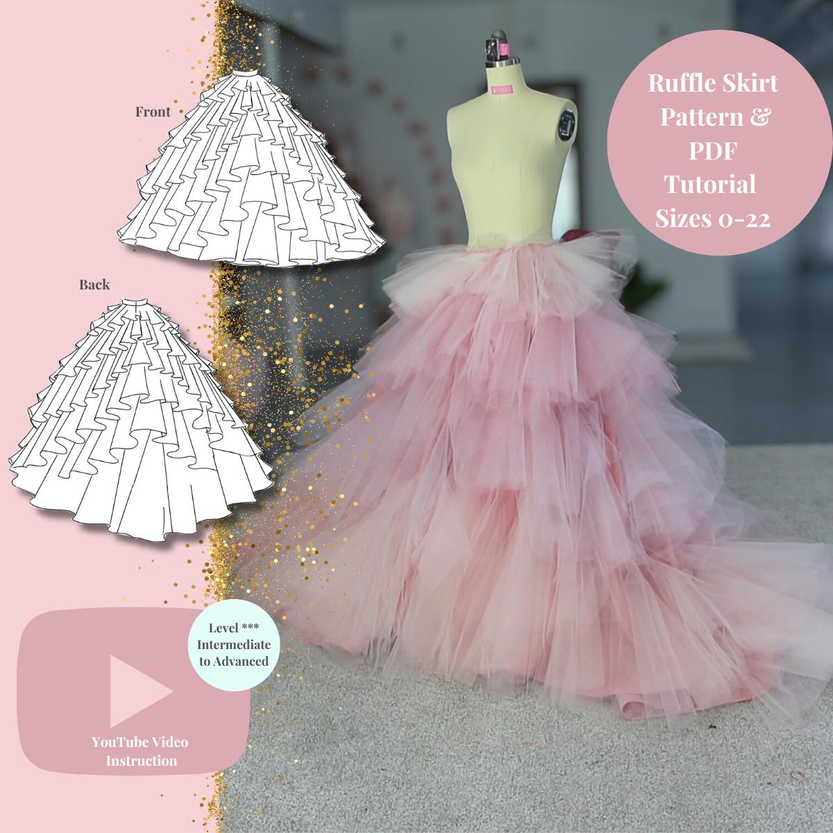 Patron de couture de jupe de robe de bal à volants | Taille ...