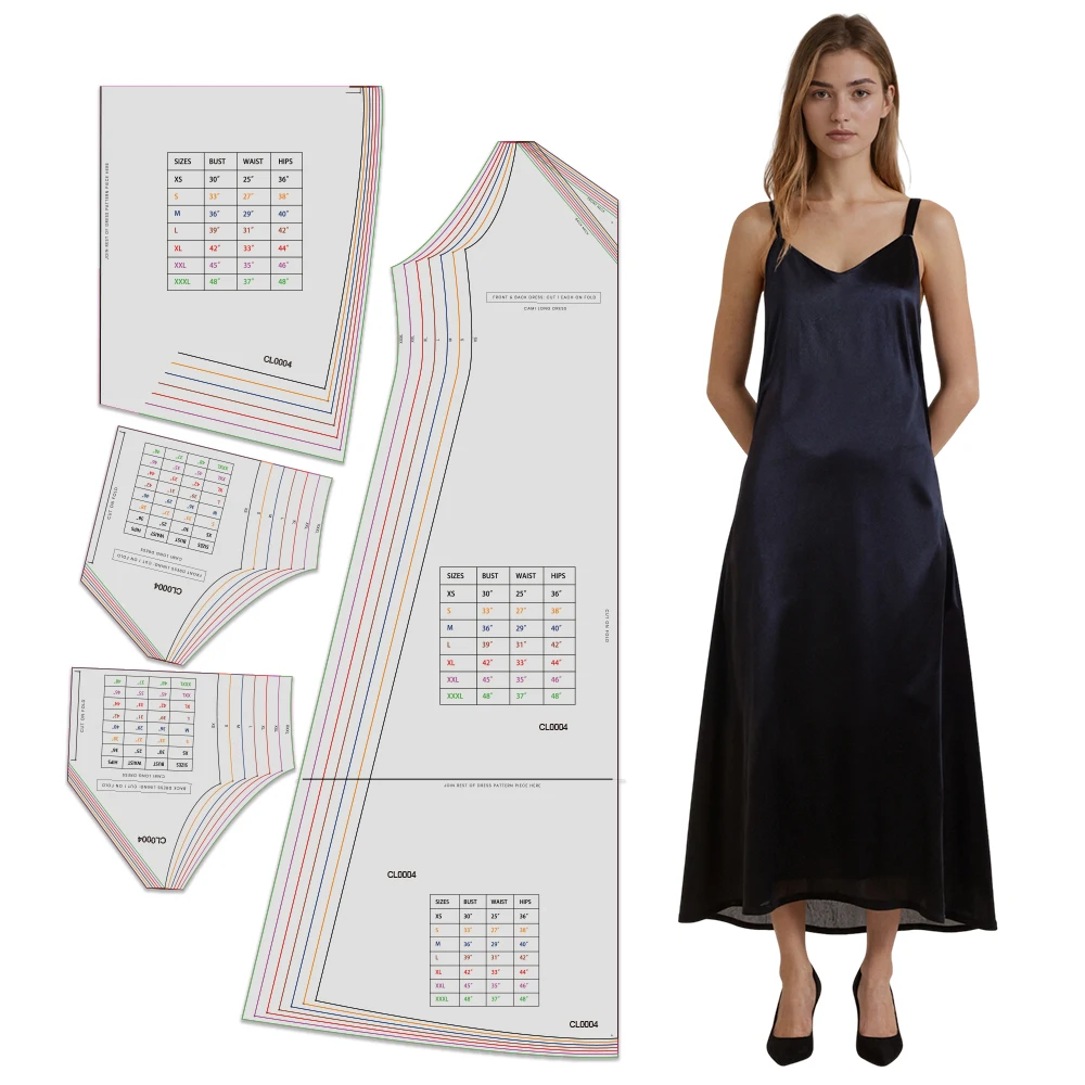 Motifs de couture pour robe longue femme en 7 tailles (XS-XXXL), ki...