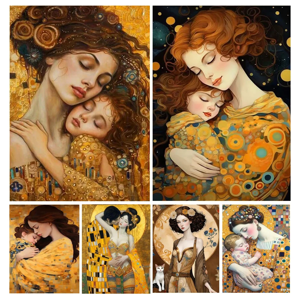 Gustav Klimt maman et bébé diamant peinture bricolage plein carré rond Sexy ama...