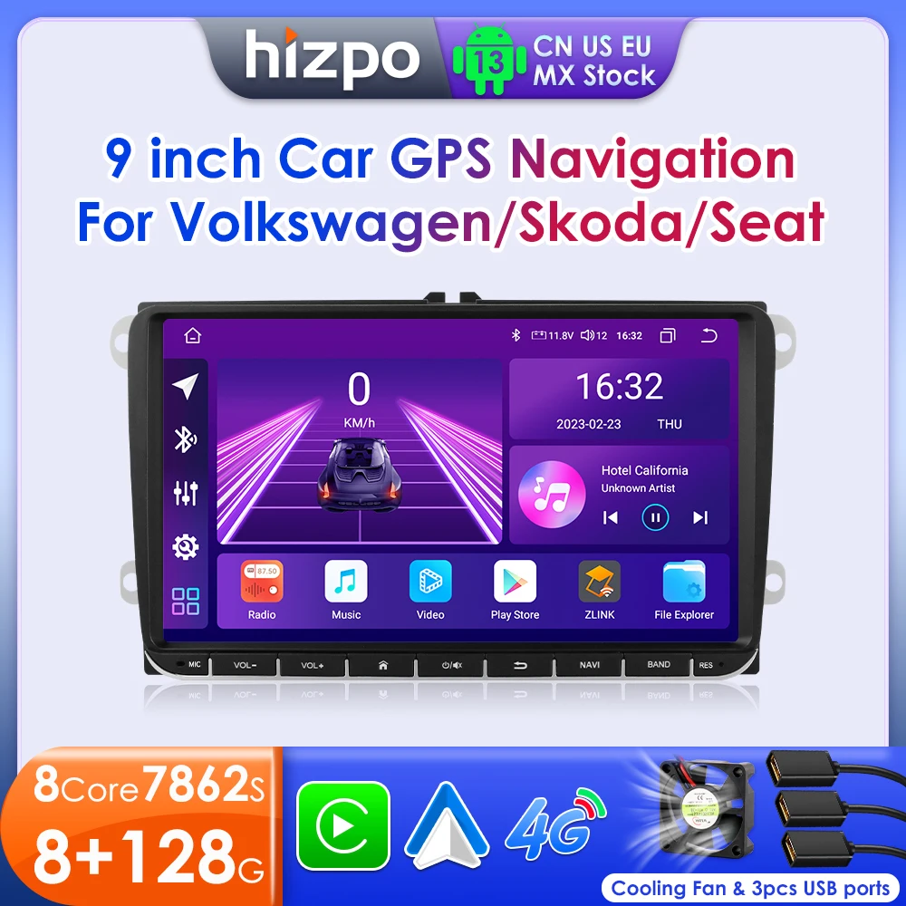 Hizpo-Autoradio Android 13, GPS, 2Din, Carplay, Limitation de la voiture, Volkswagen, VW Passat, God...