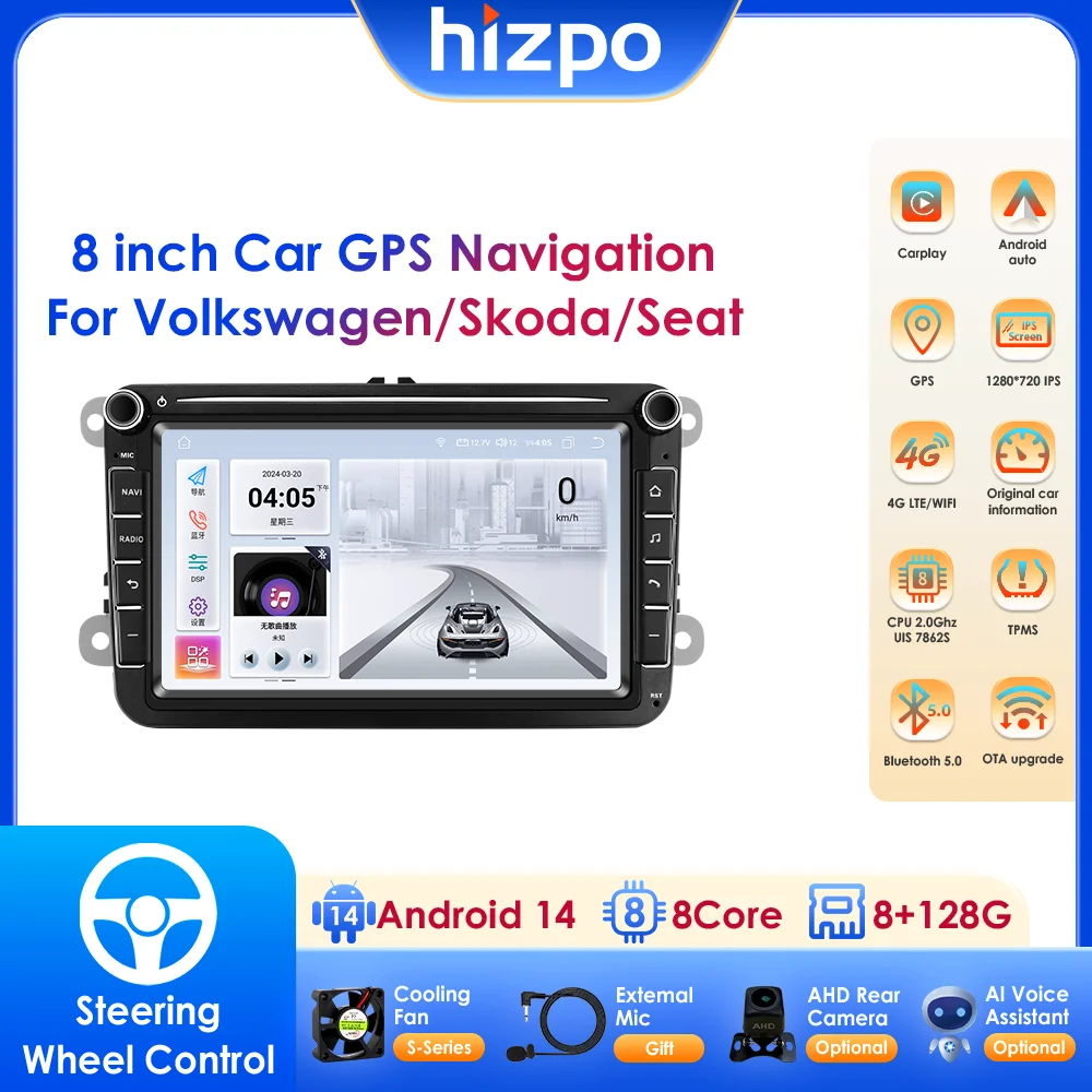 Autoradio Android 14 8 "2din, pour VW POLO GOLF 5 6 places PASSAT B6 CC JETTA TIGUAN TOURAN EOS...