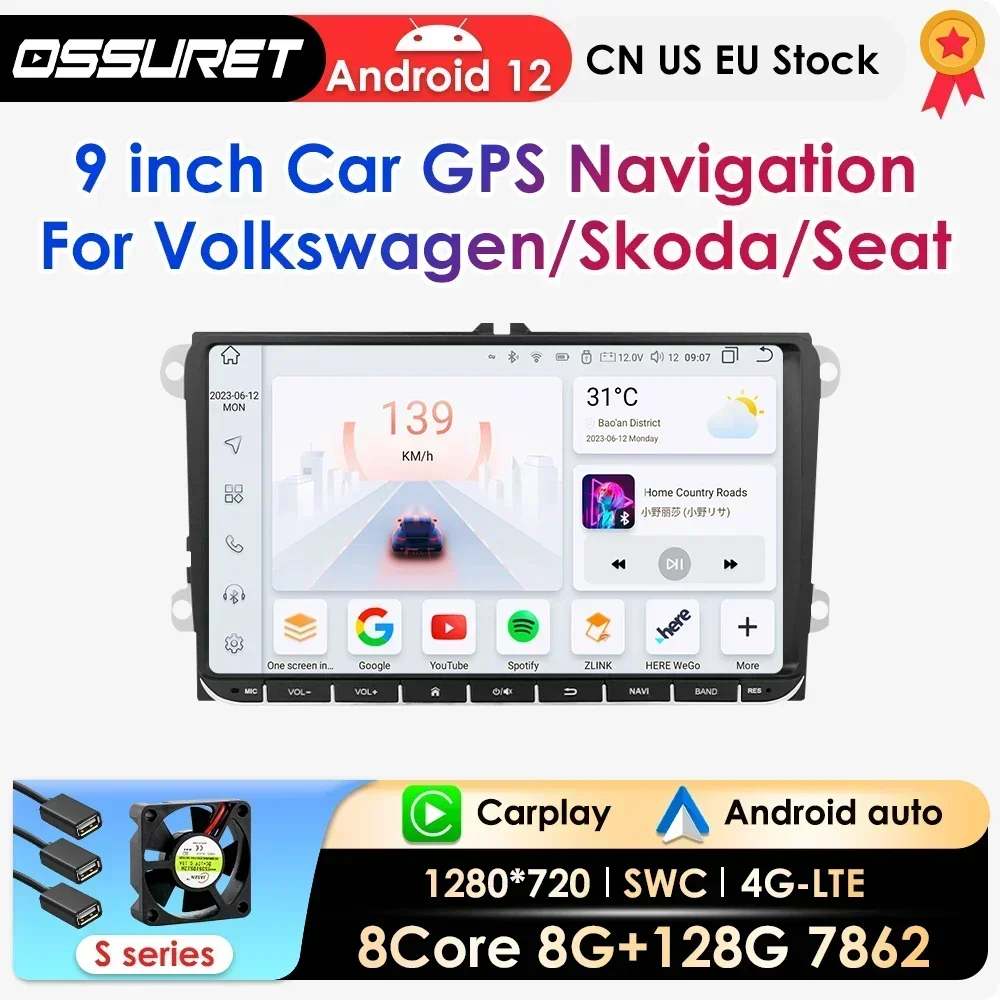 Autoradio Android 12 de 9 Pouces avec Navigation GPS, Lecteur Carplay pour Voiture VW, Seat Polo, Go...