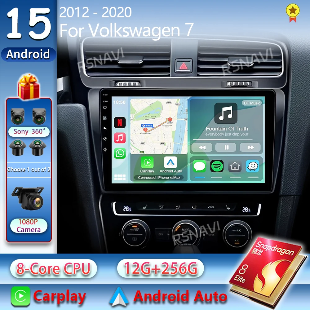 Autoradio Android 15 pour Volkswagen VW Golf VII GOLF MK7 7 GTI R 2012-2020 Carplay Android Radio au...