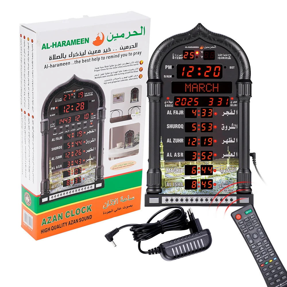 Calendrier de la mosquée Azan 12V, horloge murale de prière musulmane, alarme, calendr...