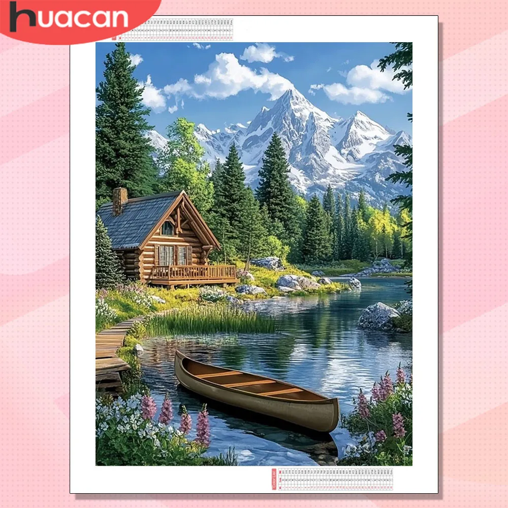 HUACAN – peinture diamantée, paysage de maison, mosaïque en point de croix, bateau...